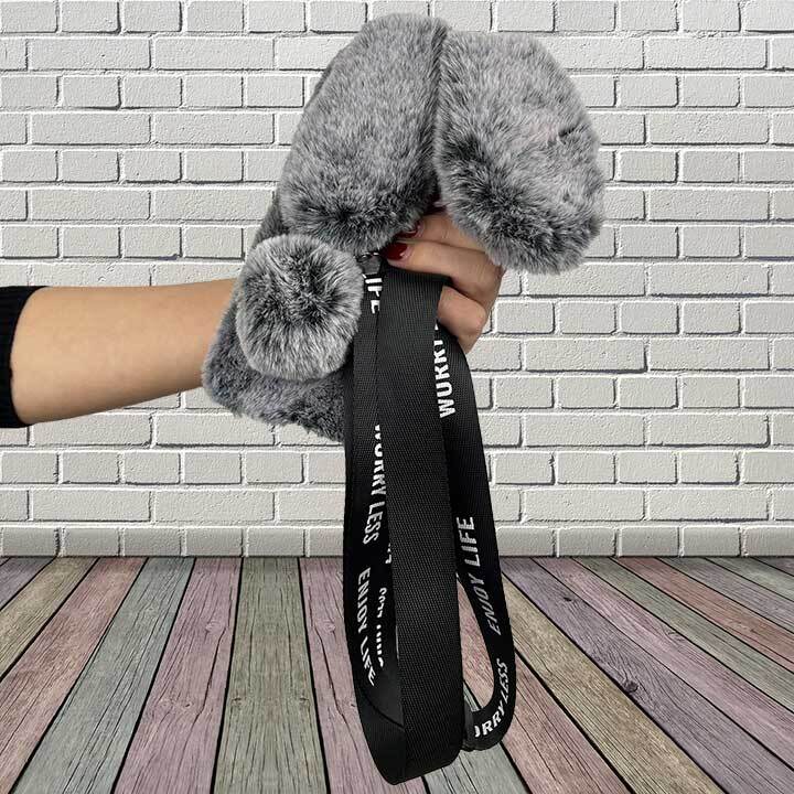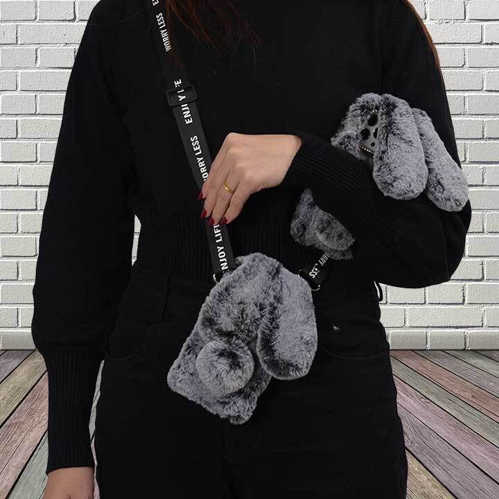 iPhone13 / 13 Pro / 13Pro Max ケース ショルダーストラップ ストラップ付 もこもこ ウサギ ぬいぐるみ ファーケース